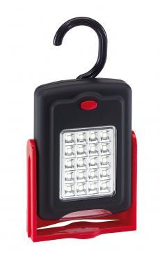 Robocza lampa WORKSHOP z 20 bardzo jasnymi białymi diodami LED i 3 diodami z boku, gumowana obudowa, do zamocowania za pomocą magnetycznego stojaka lub haczyka na odwrocie artykułu.