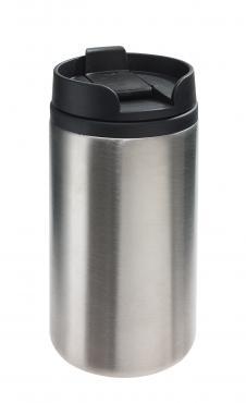 Kubek termiczny TAKE FAST o podwójnych ściankach, na zewnątrz stal nierdzewna, wewnątrz plastik, plastikowa przykrywka z bezpiecznym zamknięciem otworu do picia, z antypoślizgową podstawą, pojemność ok. 290 ml, pakowany w pudełko.