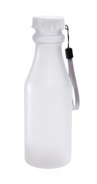 Butelka na napój TAKE AND GO o szronionej powierzchni, z bezpieczną zakrętką w kształcie kapsla, z przymocowanym paskiem, pojemność ok. 500 ml.