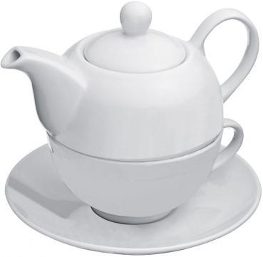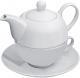 Elegancki zestaw do herbaty składający się z czajnika o poj. 400 ml oraz filiżanki z podstawką o poj. 200 ml. Całość wykonana z wysokiej jakości porcelany.