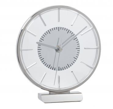 Zegarek na biurko AALBORG , chromowane wskazówki i detale tarczy, osłona wykonana ze szkła, solidna podstawa z antypośliwzgowym spodem, wykonany z wysokiej jakości błyszczącego metalu.