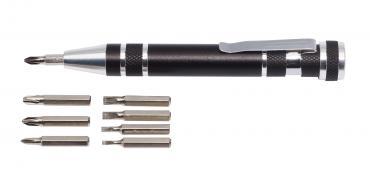 Uchwyt na bity MICRO z 8 różnymi rodzajami bitów, bity umieszczone wewnątrz, z odkręcanym wieczkiem, magnetyczną końcówką trzymającą bity, pakowane w pudełko.