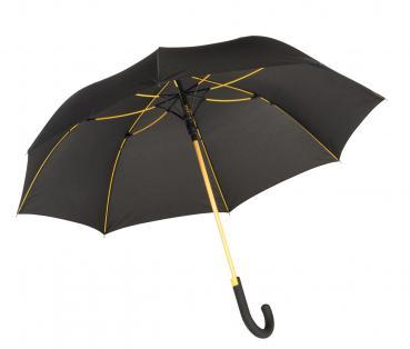 Automatyczny parasol CANCAN z metalową laską oraz kolorowymi szynami z segmentami z włókna szklanego, metalowymi kolcami, wykończona gumą laska z wbudowanym kolorowym automatycznym przyciskiem, poszycie z poliestru pongee i paskiem spinającym zapinanym na rzep.