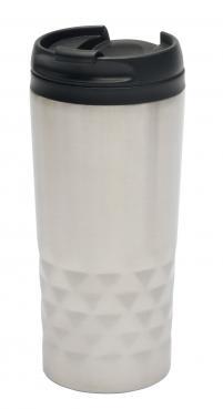 Kubek termiczny LUCARA z podwójnymi ściankami, na zewnątrz wykonany ze stali nierdzewnej, wewnątrz z tworzywa sztucznego, bezpieczna zakrętka ze zintegrowanym otworem do picia, powlekana podstawa zapewniająca dobrą przyczepność do powierzchni, pojemność ok. 300 ml.