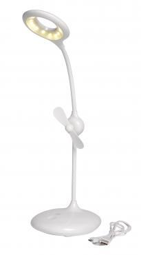 Lampa z wentylatorem FRESH LIGHT , z giętką szyjką, z 16 diodami LED, dotykowym włącznikiem i wyłącznikiem, funkcją ściemniania po dłuższym dotknięciu, zintegrowanym wentylatorem z oddzielnym czujnikiem dotyku, zasilanie przez przewód USB (długość ok. 100 cm), uniwersalne zastosowanie ze względu na zintegrowany akumulator o pojemności 1,200 mAh.