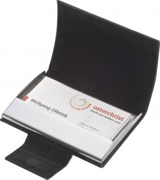 Stylowe etui na wizytówki, wykonane ze skóry ekologicznej z magnetycznym zapięciem. Logotyp można umieścić bezpośrednio na produkcie.
