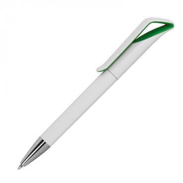 Długopis plastikowy z mechanizmem obrotowym oraz dużym wkładem piszącym na niebiesko. Logotyp można umieścić bezpośrednio na produkcie.