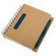 Notatnik 70 kartek formatu B6 w linie z papieru z surowców wtórnych z długopisem o wymiarach 137x10x10 mm części plastikowe są biodegradowalne.
