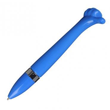 Plastikowy długopis o oryginalnym kształcie. Wyposażony w niebieski wkład.