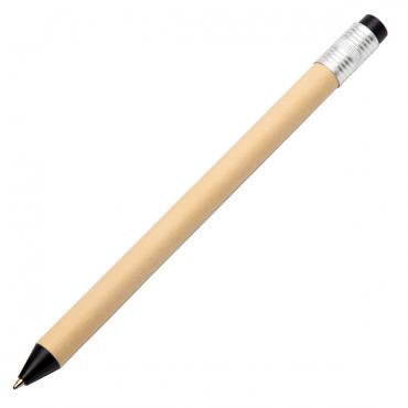 Długopis w kształcie ołówka wykonany z kartonu z recyklingu i plastiku nadającego się do powtórnego przetworzenia.
