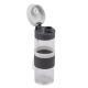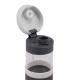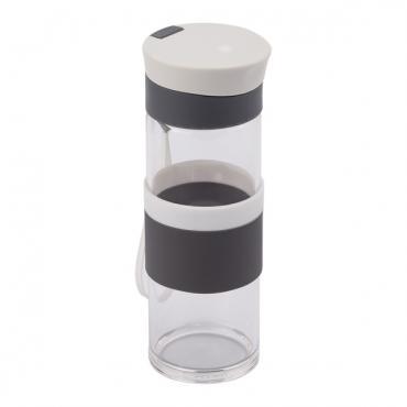 Szczelny bidon o pojemności 440 ml. Wykonany ze specjalnego szkła borokrzemowego, które jest nadzwyczaj przyjazne naszemu zdrowiu, a także lżejsze i bardziej wytrzymałe od tradycyjnego szkła. Bidon wyposażony jest w uchwyt na nadgarstek i opaskę do trzymania.